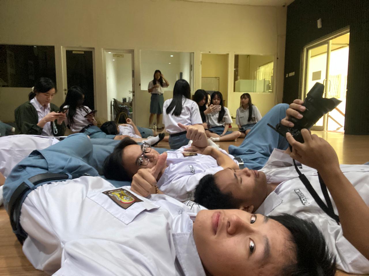 Foto yang di lampirkan adalah ketika kami selesai runthrough drama di francis room. Disaat itu kami sedang evaluasi dan mem-“polish” ide baru dari sutradara yang berkonsep perkap menjadi bagian dari drama agar flowdari drama kami lebih baik dan tidak monotone.